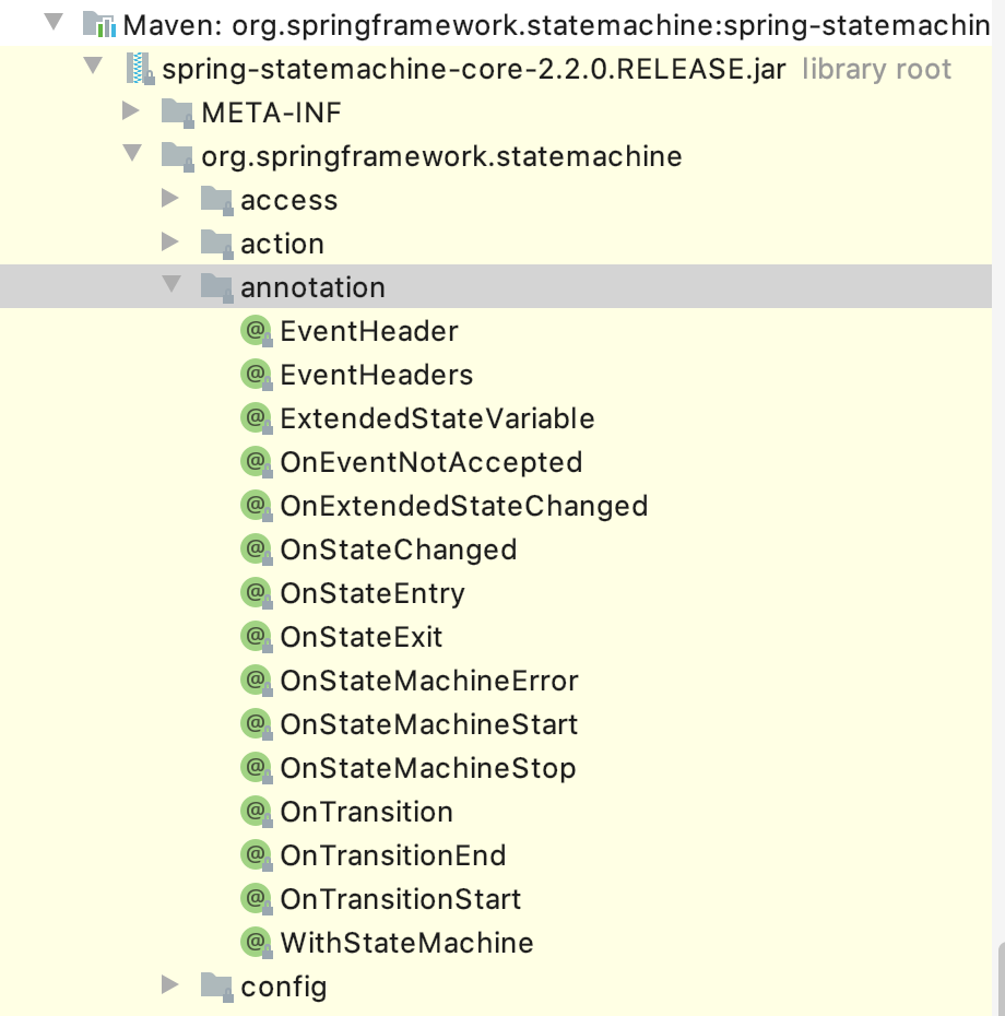 其实状态监听器可以实现的功能远不止上面我们所述的内容,它还有更多的事件捕获,我们可以通过查看StateMachineListener接口来了解它所有的事件定义: