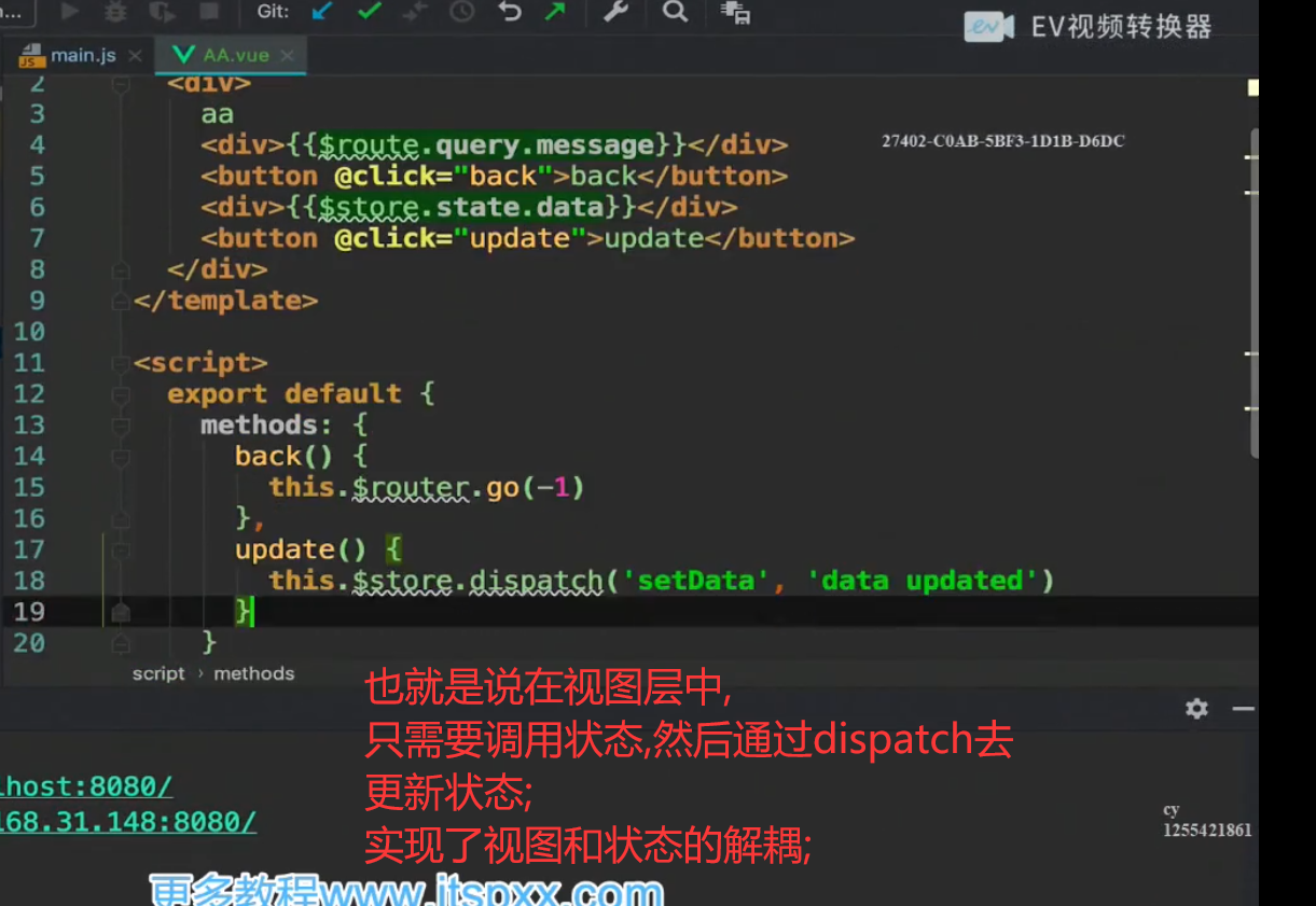 vuex状态管理1 糖糖Y 2020-05-10 135 阅读1分钟 我们可以把view想象成template,action想象成methods vuex使得不同组件之间共享状态更容易; 1.cnpm i -S vuex 2. 3.我们定义store,它通过vuex下的store来进行实例化 通过action调用mutation来实现状态的变更.actions里可以通过异步的方式来调用,mutation通过同步的方式来修改; 所有的业务逻辑是写在vuex中的,不在视图中,这样就实现了视图和状态的解耦