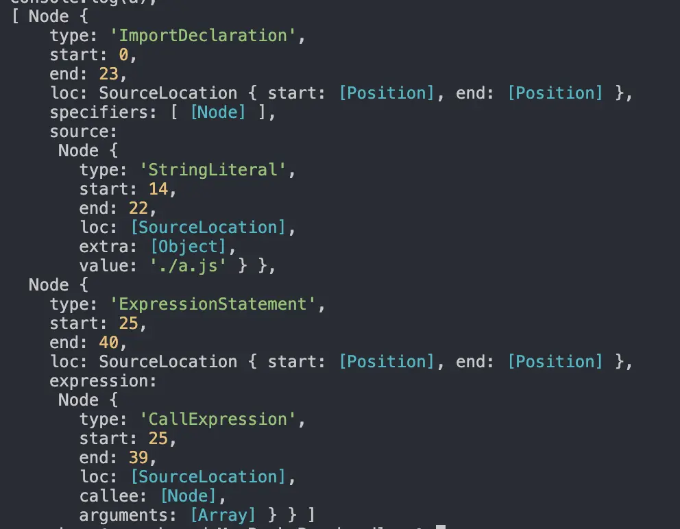 上述代码中,我们可以拿到ast抽象语法树,我们先开看看长什么样子