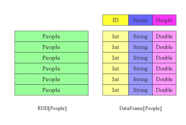 我们看下下图做个对比,同样一份数据在RDD和DataFrame的样子: