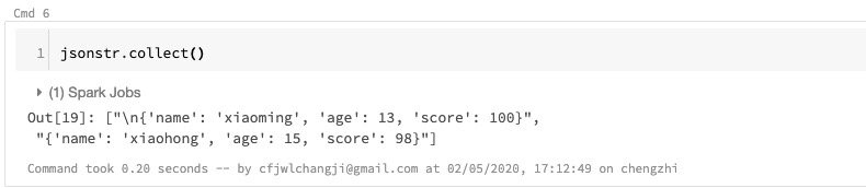 这下一对比我们就发现了,json格式的字符串果然可以被解析,并且RDD被转化成了表格格式的DataFrame。