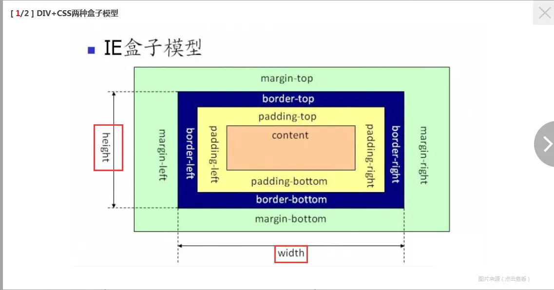- w3c盒子模型的范围包括margin、border、padding、content,并且content部分不包含其他部分(意思就是content为width)。