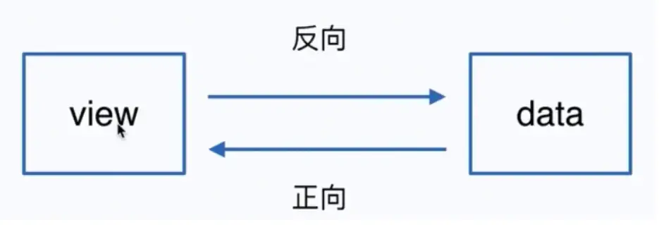 双向是指ViewModel中的data部分和View之间的双向关系。
