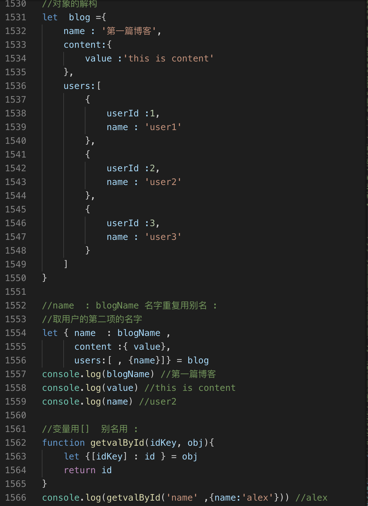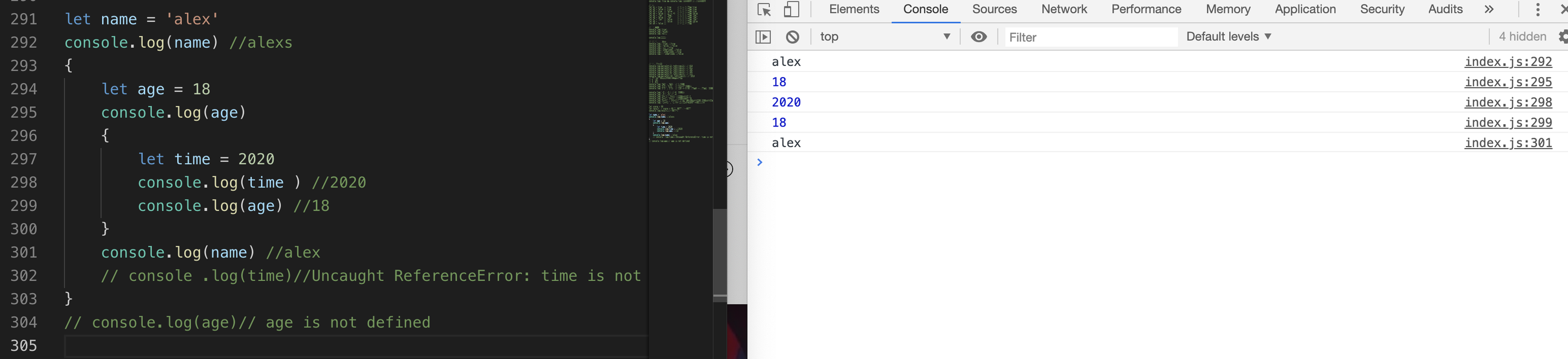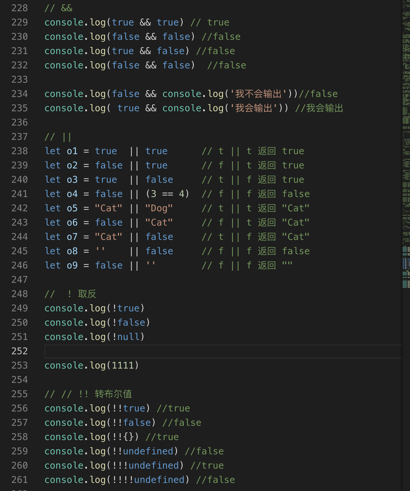 //(cmd + / 快速注释 再次按解除注释)表示。例如// let name = 'js' -