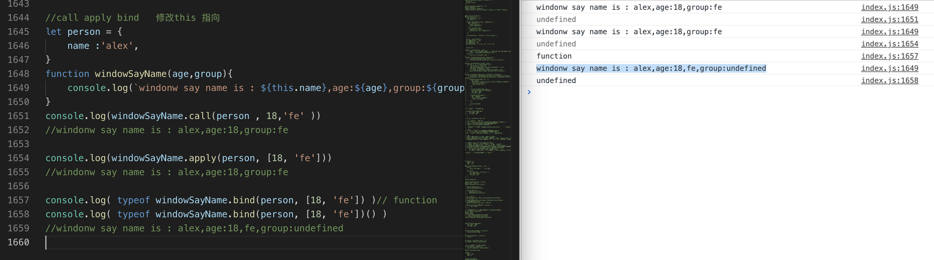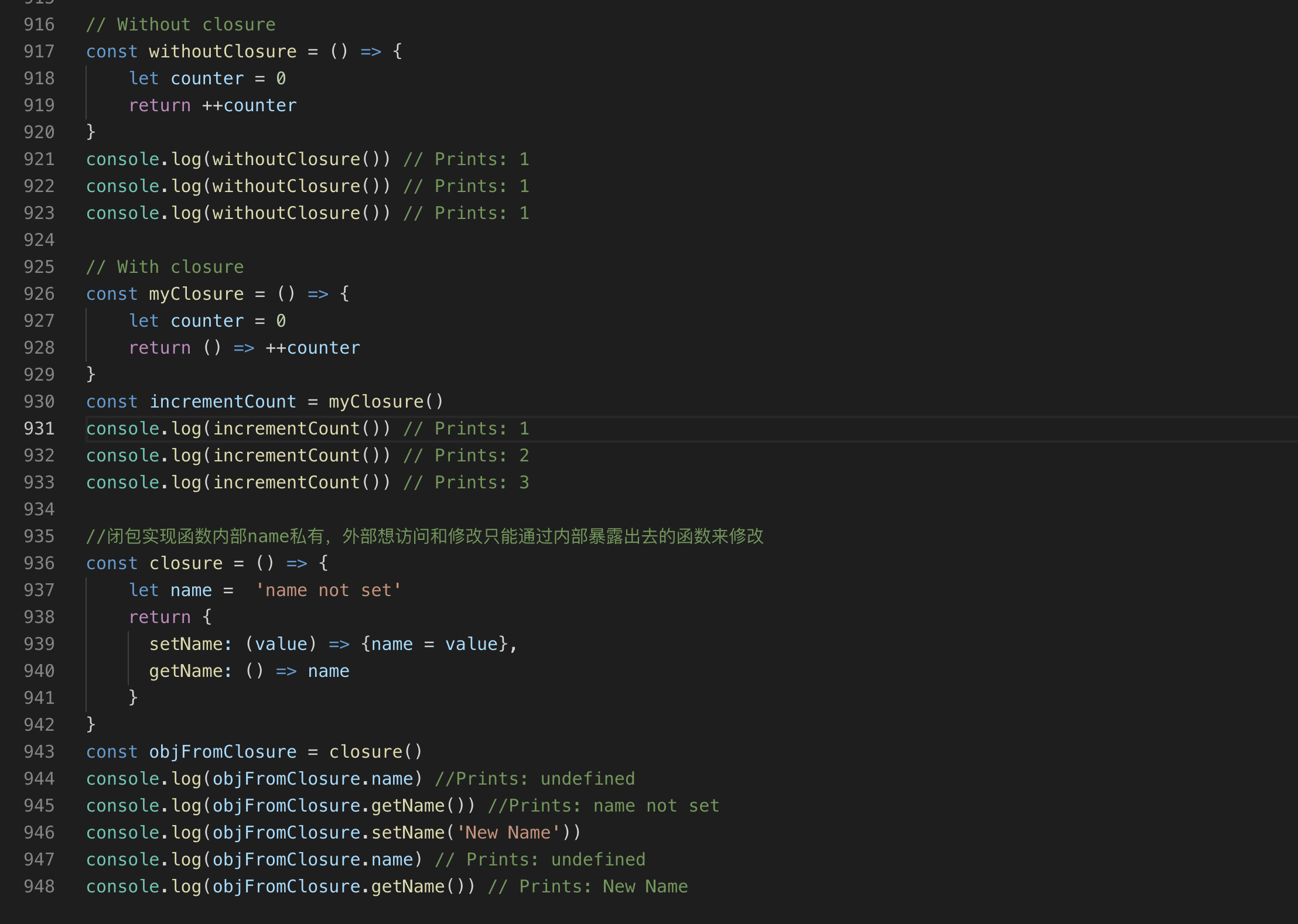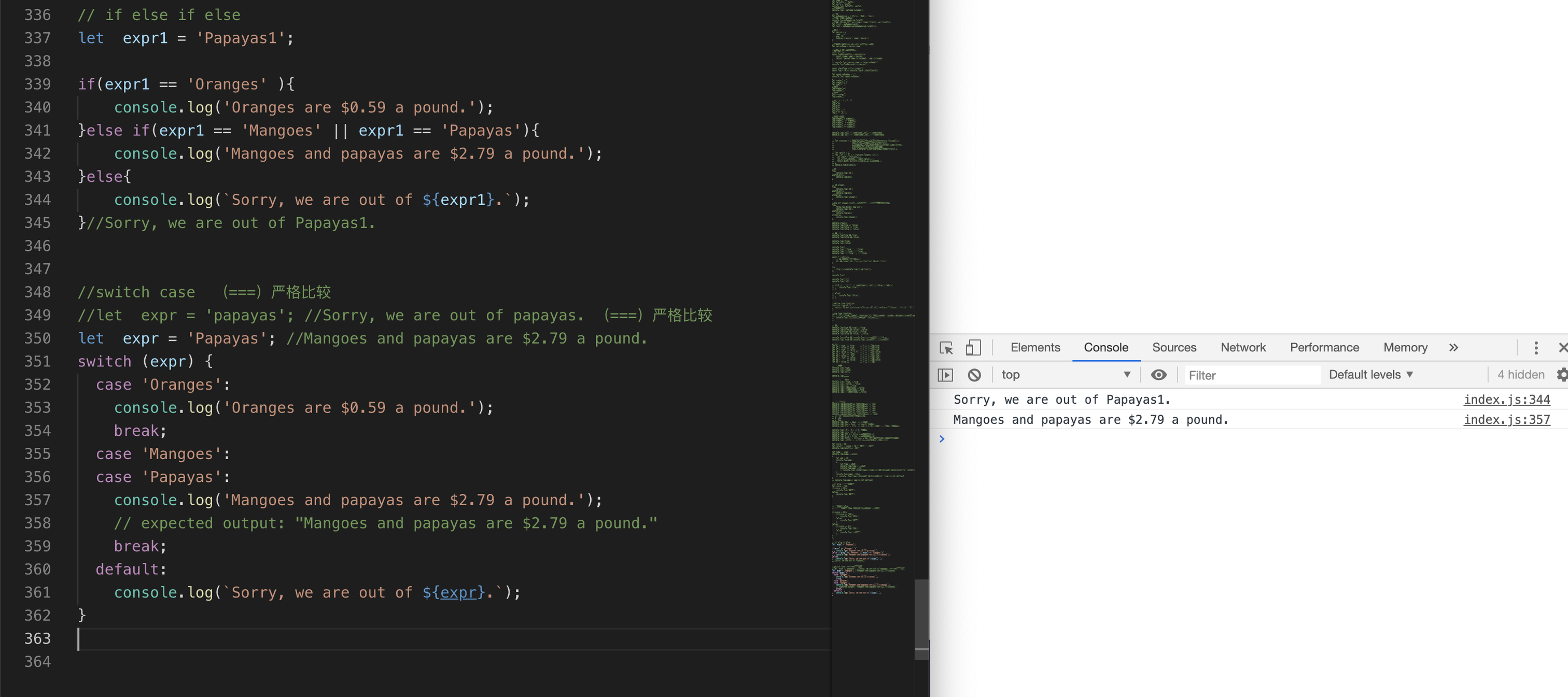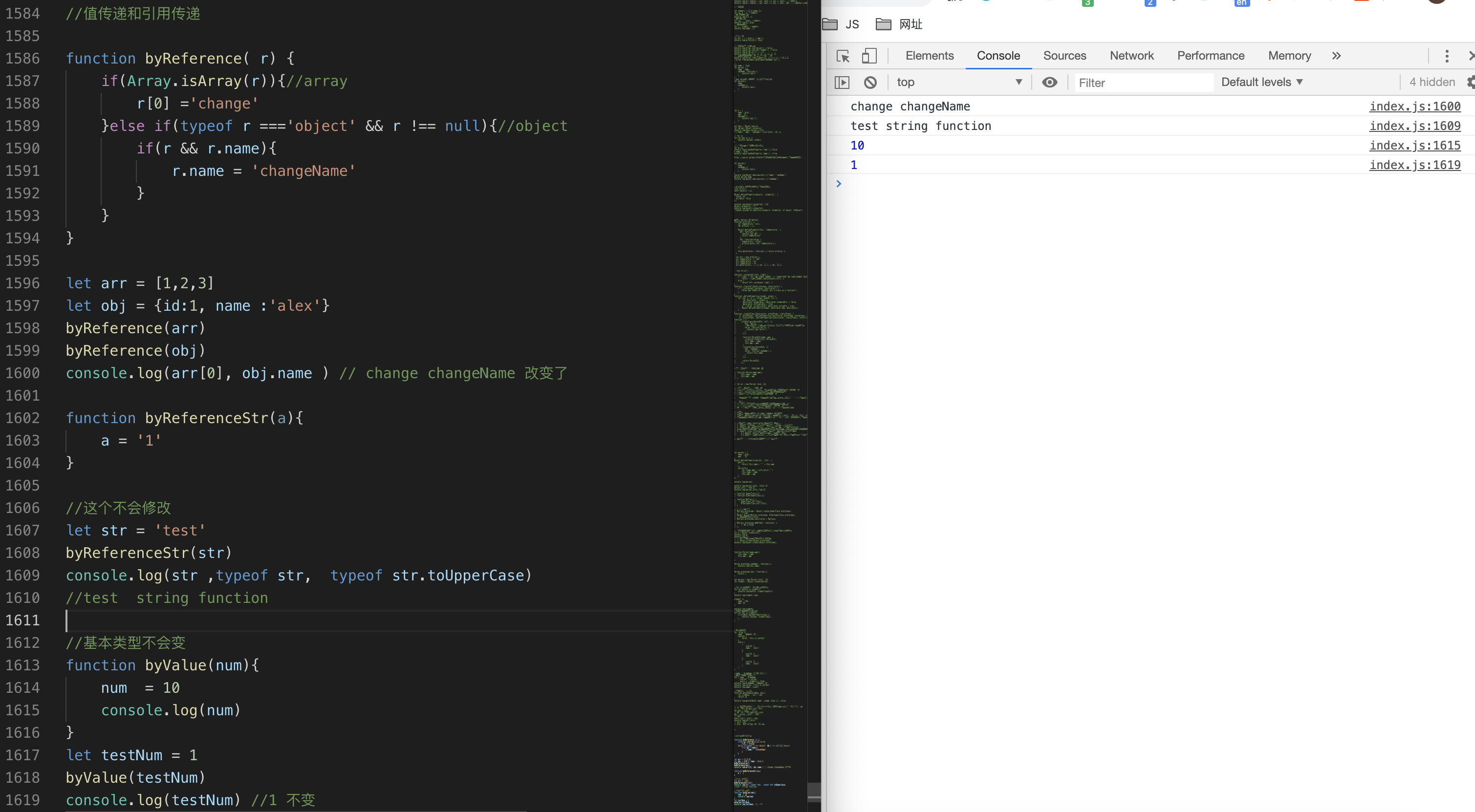 //(cmd + / 快速注释 再次按解除注释)表示。例如// let name = 'js' -