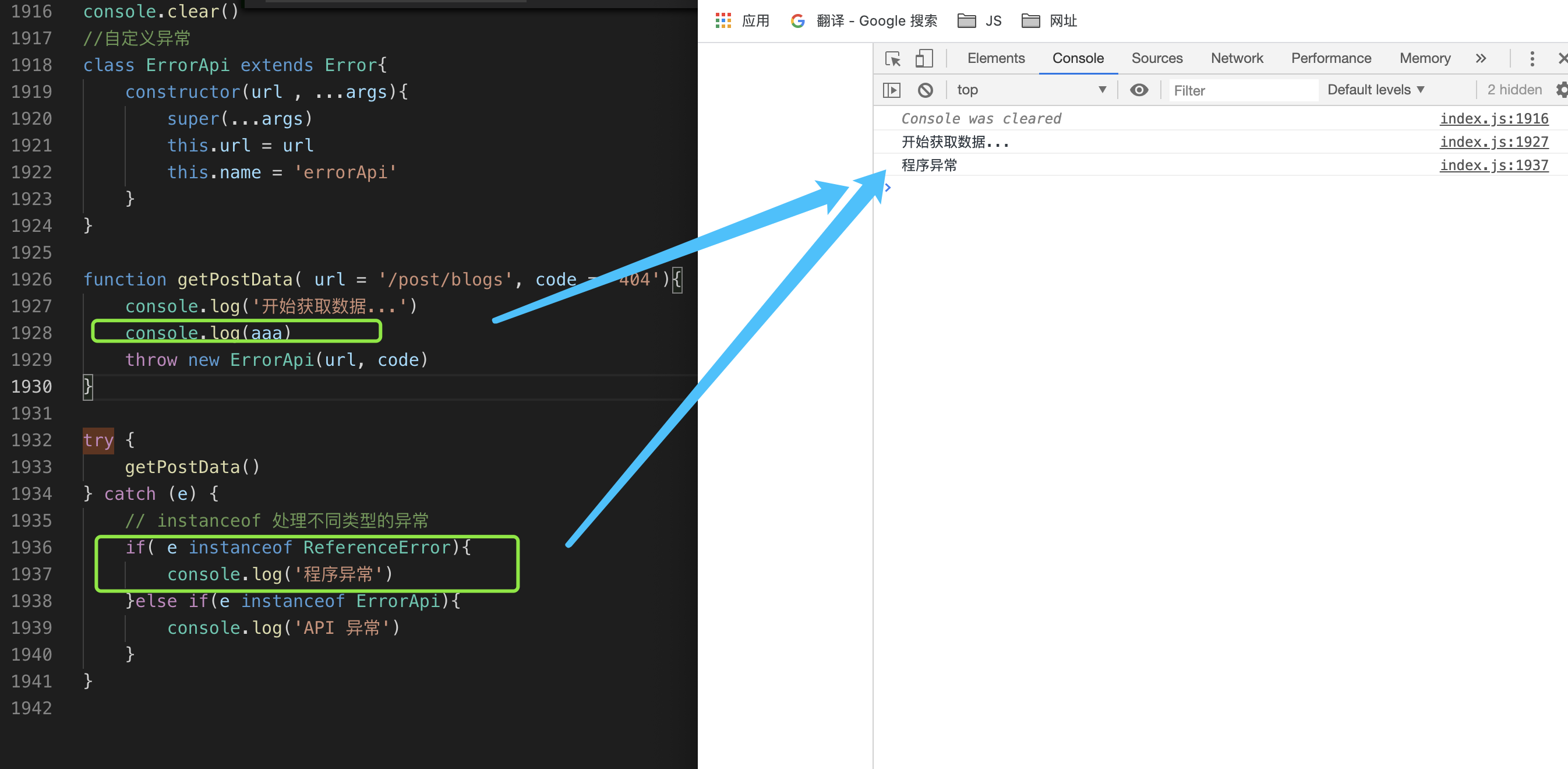 console.log(err)//then 异常