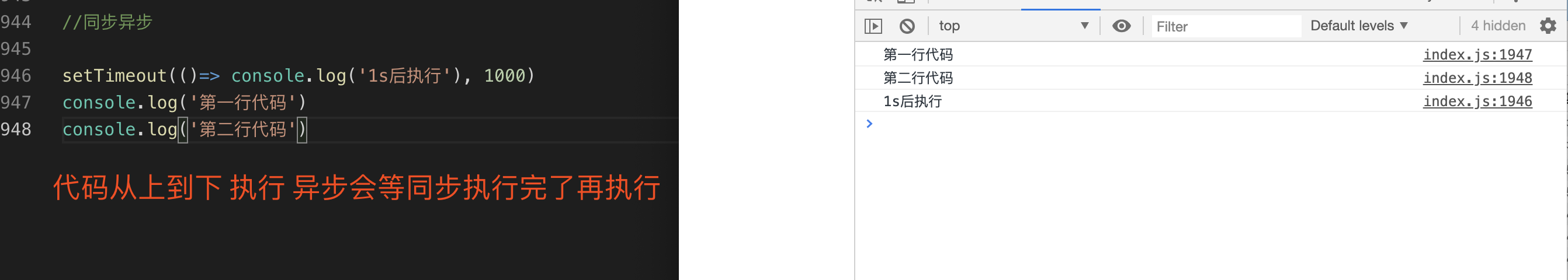 console.log('end')