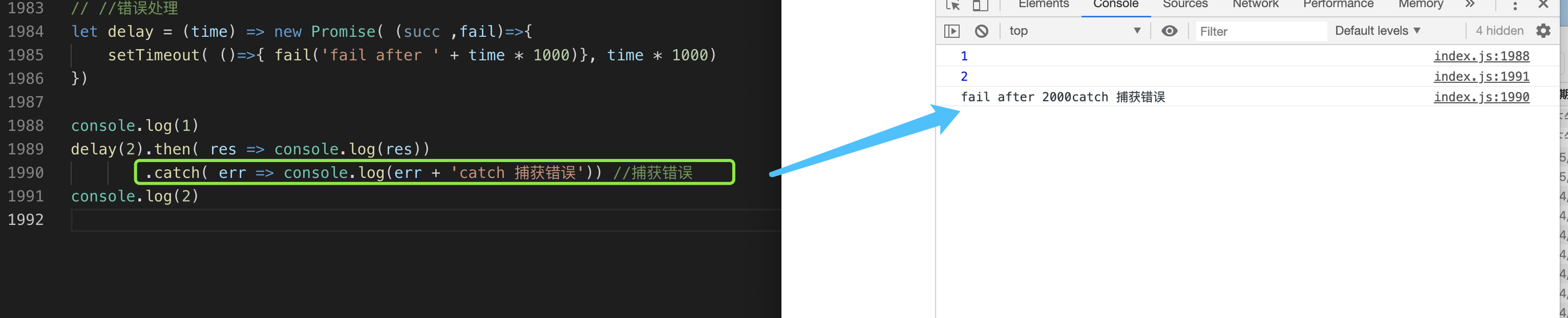.catch( err => console.log(err + 'catch 捕获错误')) //捕获错误