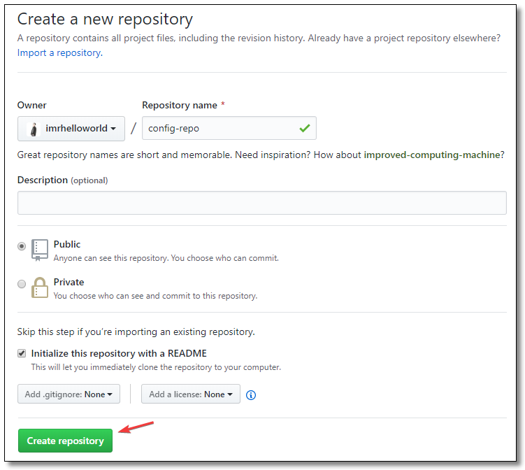 uri: https://github.com/imrhelloworld/config-repo # 配置文件所在仓库地址