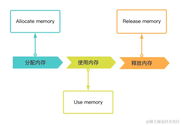 - 使用内存:通过在代码操作变量对内在进行读和写 (也就是使用变量、函数等)