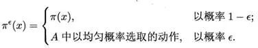 以上采样动作采用的是e-贪心策略:以概率e均匀地从动作集合A中选取动作;以1-e概率选取当前最优策略: