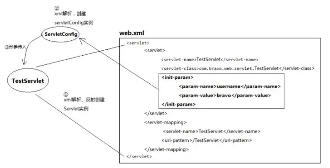 翻译的意思是Servlet配置,我们是在web.xml中配置的Servlet,因此ServletConfig对象包装了Servlet的一些参数信息。