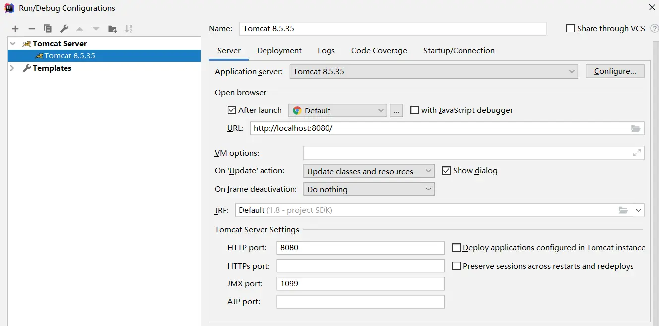 点击右上角的Tomcat图标,如下图中的Tomcat8.5.3.5,然后点击Edit Configurations。