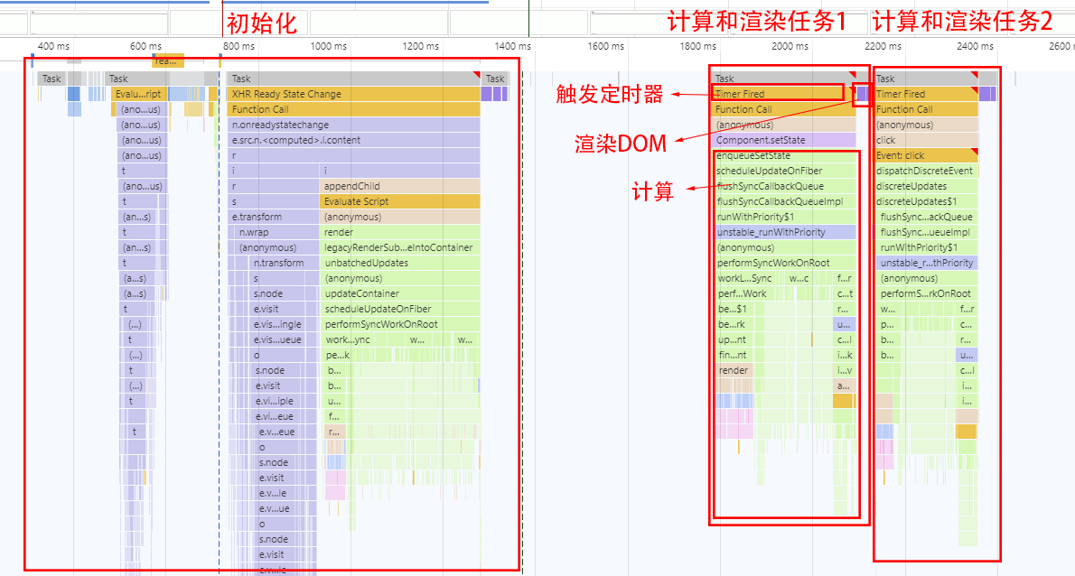 多个任务时,react都会按照任务顺序一个一个执行,它无法保证后面的任务能在本应执行的时间执行。(其实就是JS本身特性EventLoop的展现。比如只要一个while循环足够久,理应在某个时刻执行的方法就会被延迟到while循环结束后才运行。)