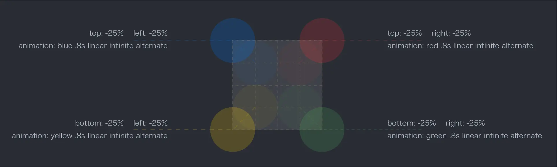 因为我们是交替运行的,所以要把四个小球先散开, 再把动画名称加上