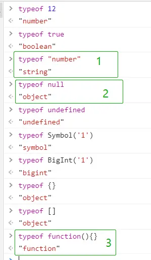 - typeof true => 'boolan'