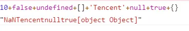 let result = 10+flse+undefined+[]+'Tencent'+null+true+{}