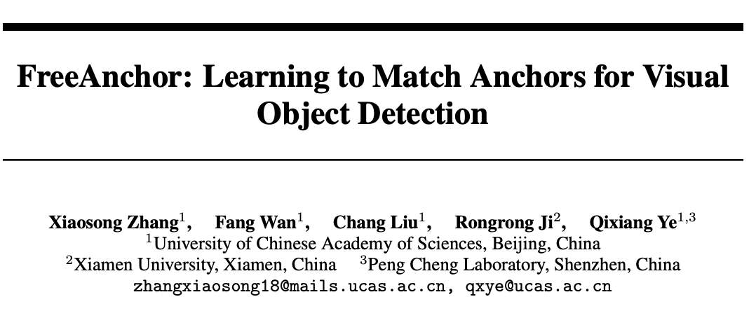 论文: FreeAnchor: Learning to Match Anchors for Visual Object Detection