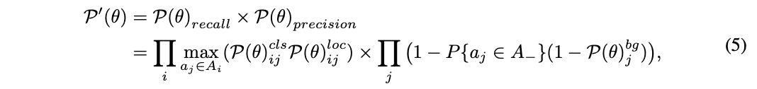 根据上面的定义,检测定制似然定义如公式5,揉合了召回率和准确率,并且与NMS兼容。通过优化似然,可以同时最大化召回率和准确率,达到自由地匹配GT和anchor。