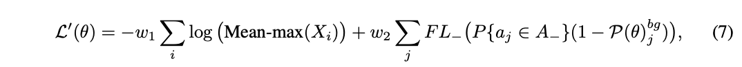 将公式6的max函数替换为Mean-max函数,对第二项加入focal loss,同时,两项分别进行和