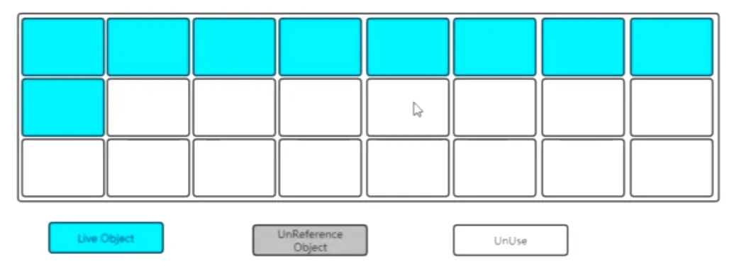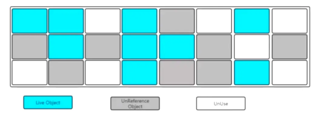 整理移动之后会得到一片连续的可分配内存空间。解决了空间碎片的问题,但是这种方式在标记和整理移动的过程中也是耗时的。