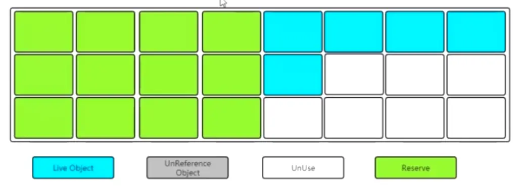 一开始将这个内存空间一分为二,两边大小相等,一边使用中的,一边是保留区未使用的。划分为这样示例图: