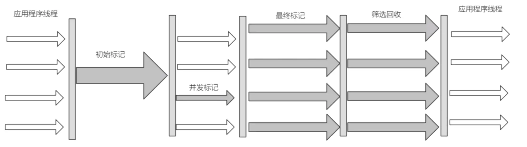 并发清理:第四阶段垃圾收集线程和业务代码线程再次一起执行,一起跑。