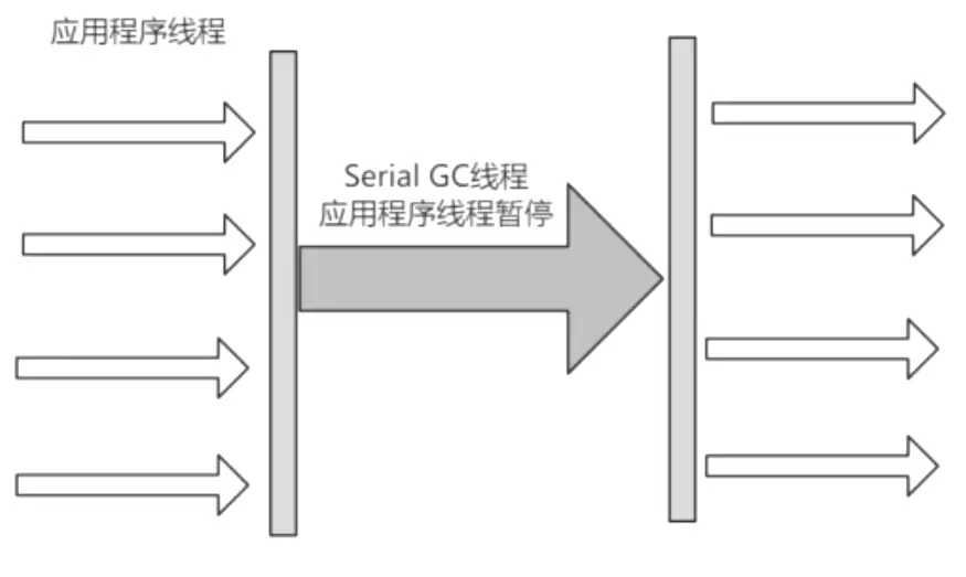 - 如果应用程序运行在一个单核的CPU,和没有停顿时间要求的情况下;可以让JVM自己去选择或者选择SerialGC串行收集器。-XX:+UseSerialGC