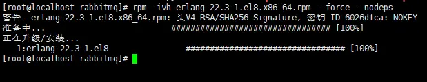 rpm -ivh erlang-22.3-1.el8.x86_64.rpm --force --nodeps 下载地址: https://packagecloud.io/rabbitmq/erlang/
