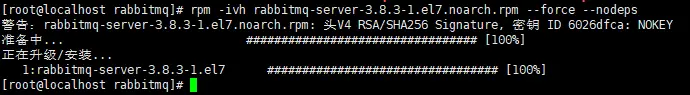 -ivh rabbitmq-server-3.8.3-1.el7.noarch.rpm --force --nodeps