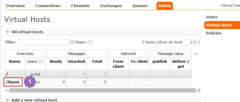 虚拟主机:类似于mysql中的database。他们都是以“/”开头
