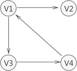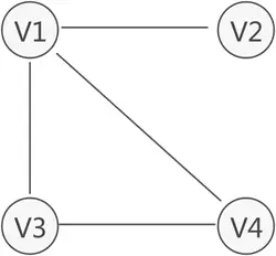 Vi表示图中的顶点,且所有顶点构成的集合通常用V表示,上图中顶点的集合为V={V1,V2,V3,V4}
