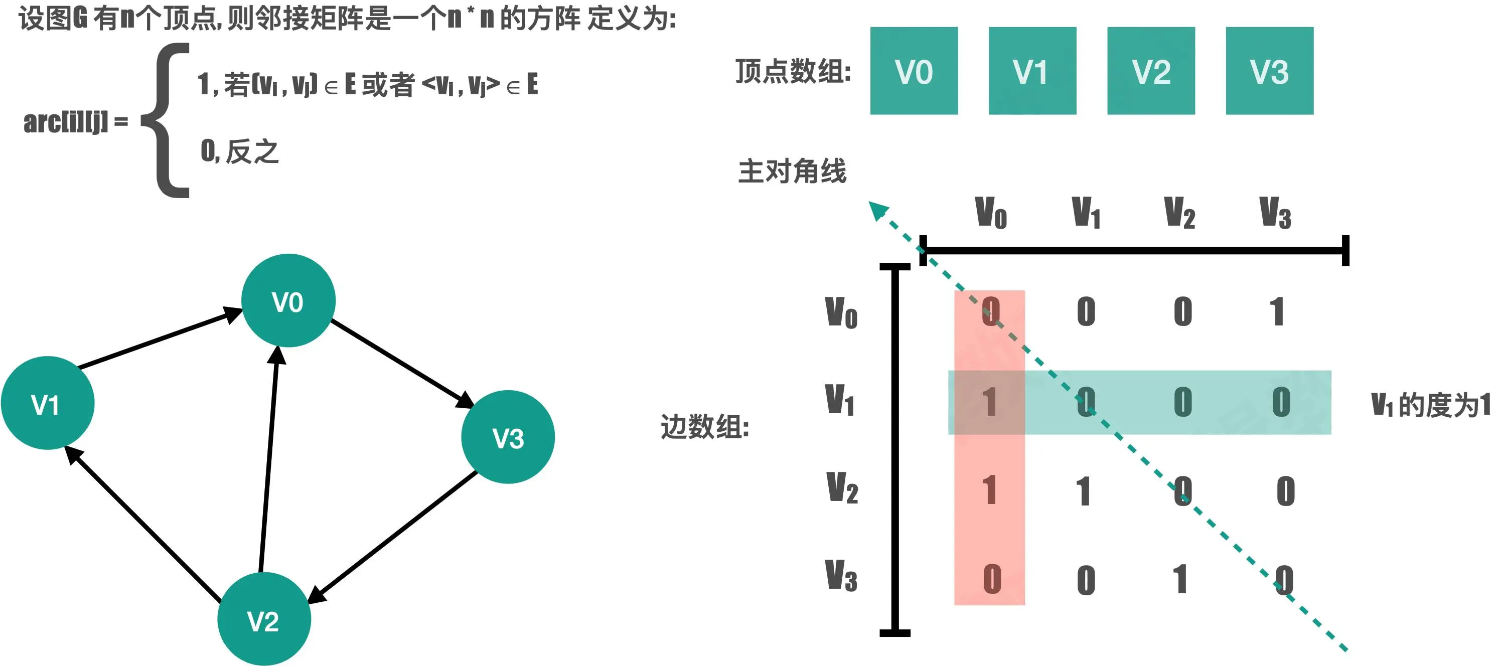 如果顶点之间存在边或弧,在相应位置用 1 表示,反之用 0表示;