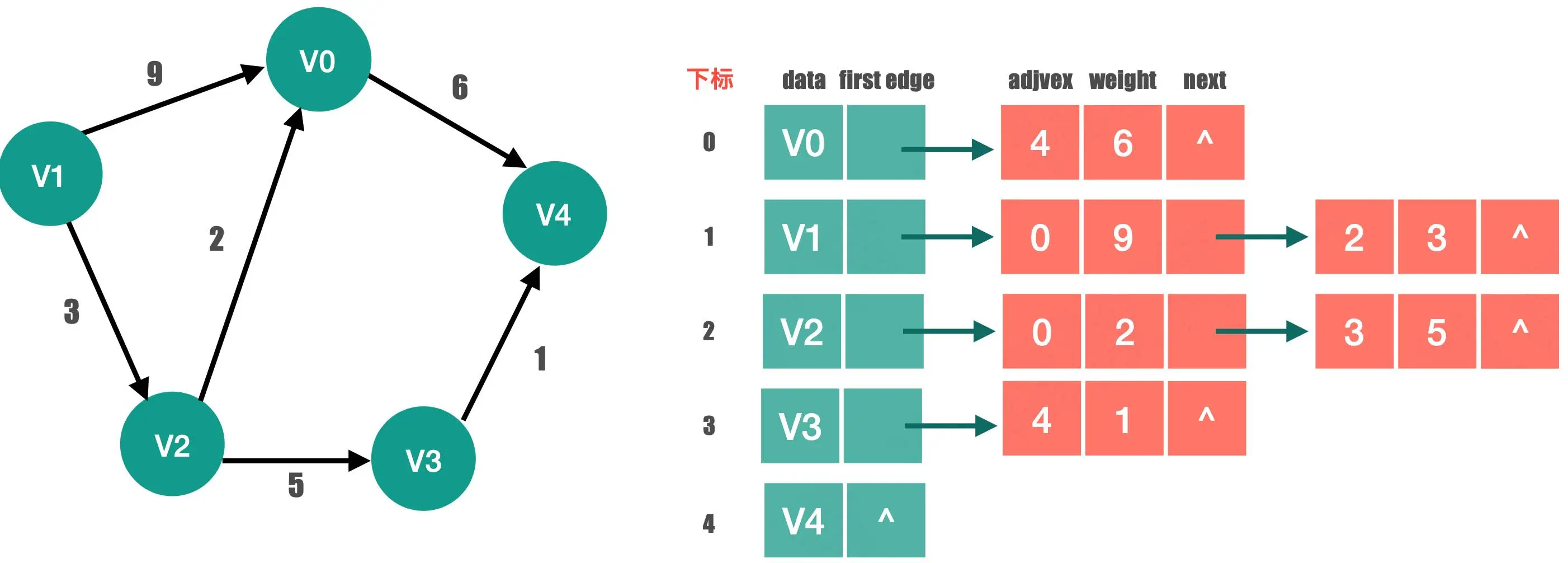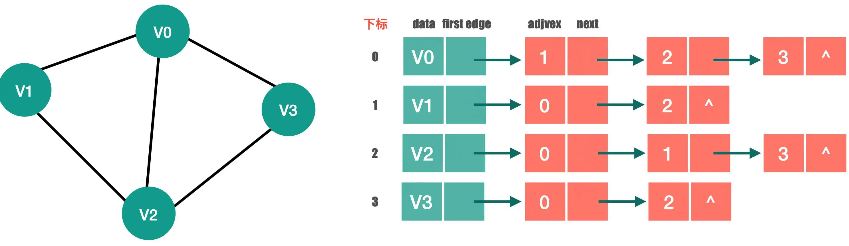 int adjvex; /* 邻接点域,存储该顶点对应的下标 */