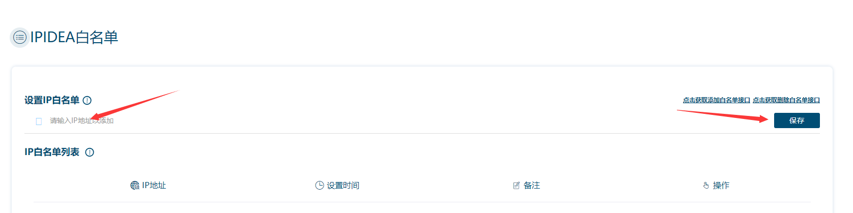 在获取ip之前,我们要通过个人中心设置IP白名单,否则是无法获取到数据的。