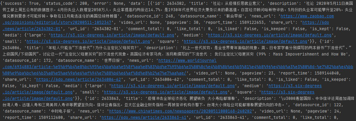 前后端分离的接口,对于爬虫来说还是比较友好的,数据提取起来比较方便,这里就不做过多处理,根据需求提取数据即可。