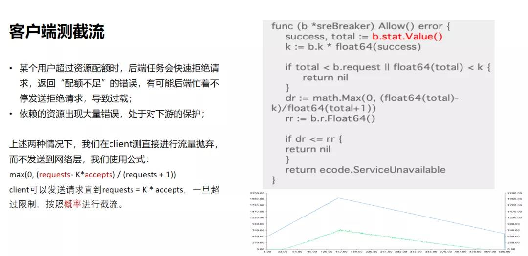 我们在Google SRE里学到了一个有意思的公式,max(0, (requests- K*accepts) / (requests + 1))。通过这种公式,我们可以让client直接发送请求,一旦超过限制,按照概率进行截流。