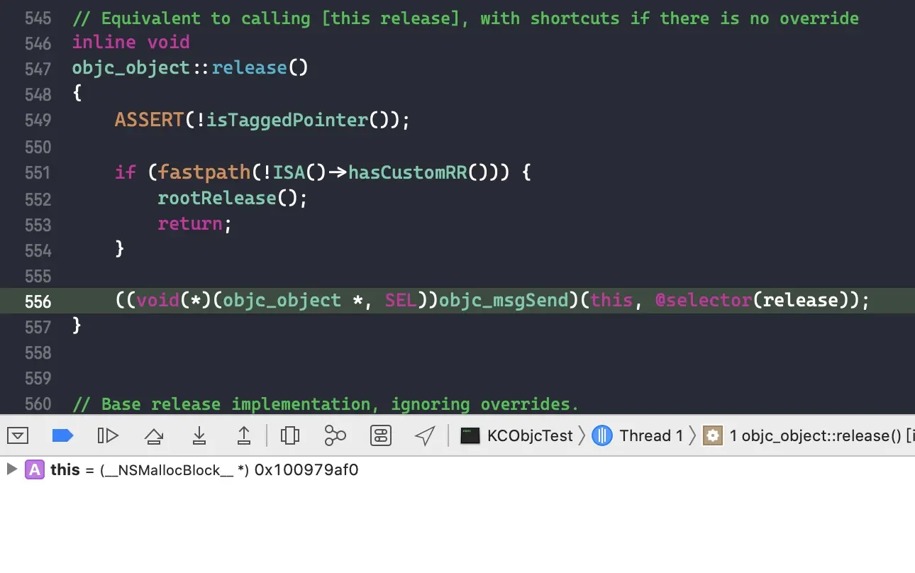 因为没有 block 的 release()源码,通过调用栈发现随后调用了 _Block_release() 函数
