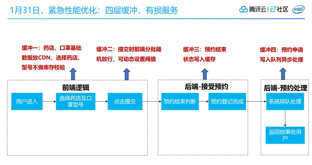 A:药店、口罩型号等配置都是放到CDN,不需要请求后端服务器。只有提交预约和查看预约结果需要请求后端服务器。