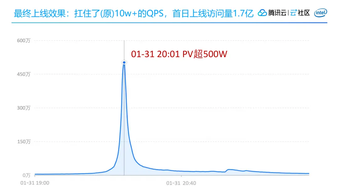 口罩预约功能上线以后,首日访问量达1.7亿,抗住了10W+的QPS。