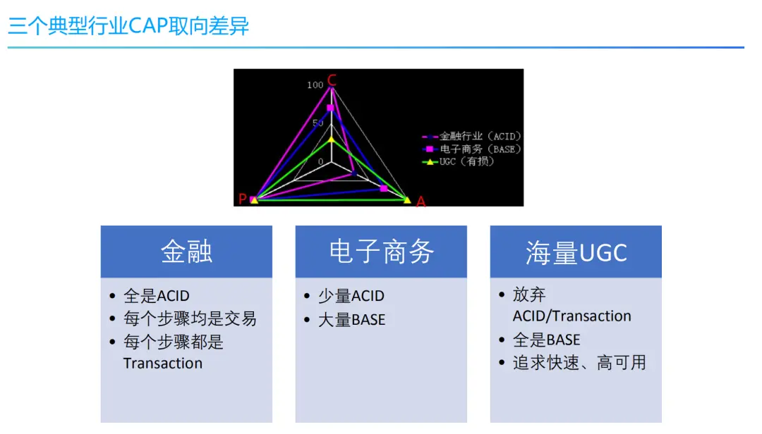 在金融业、电子商务,海量UGC三种不同的业务类型当中,CAP三要素是如何取舍的呢?
