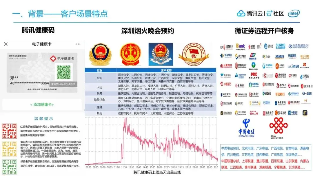 抗疫期间,全国多个省份的健康码都会用到身份核验的过程,功能调用了腾讯云慧眼的后台认证能力。比如深圳公安、山西公安、云南公安等一系列的公安机关,还有人社、税务、政务综合、住建等政务机构,都对接到了腾讯云慧眼。
