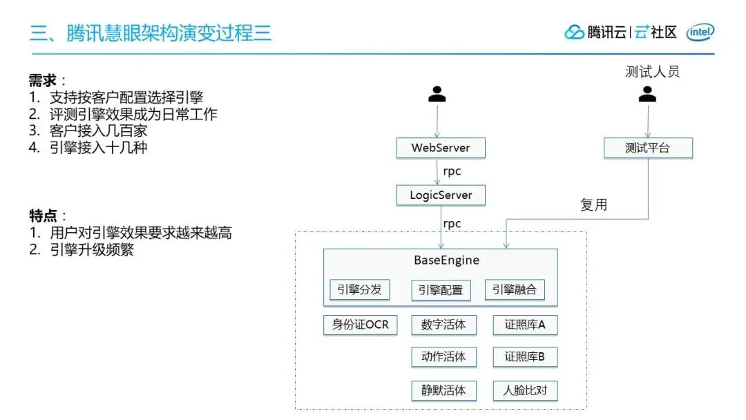 演变后最大的问题是什么?我们的版本开始变得越来越多,难以管理,也会产生很多的重复开发。同时随着引擎数量越来越多,我们的评测需求也会变得越来越多,因为每来一家引擎我们都要去评测看它的效果是不是比当前的更好,如果好的话,才会上云。