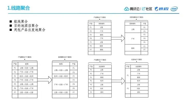 例如,北京->上海,这算是一条航线。不同的产品可能都会配这个航线,比如说产品1配置了上海->北京->上海,然后产品5也配置了上海->北京->上海。按原来的调用方式,这是两个请求。但是,将这个航线作为一个聚合的话,北京->上海这一个请求可以复用到产品1跟产品5。