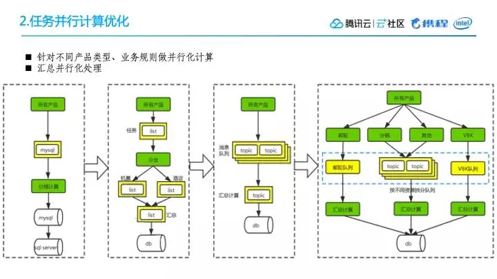 第四、把计算结构打平,不同的产品可以并行任务生成并计算,不同产品的计算频率可以不一样,原来各个资源队列处理完成之后都会放到汇总队列处理,这里汇总队列容易成为瓶颈,因此把汇总队列去除,把它放到各个资源队列里直接计算,加快整个的计算效率。