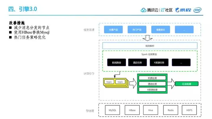 死包我们基本上能做到准实时的情况,因为我们有消息通知机制,当我们收到这个消息之后,会立马进行计算。基本上酒店的价格更新,我们可以做到一天一次,但是像机票的话,因为机票的任务量太多,外面对我们的限流也比较厉害,所以现在基本上只能做到两天跑一次。