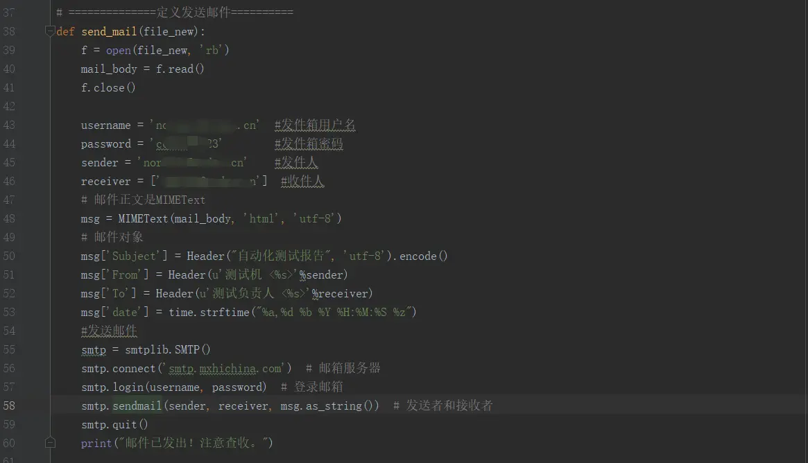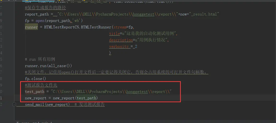 3、将得到的最新测试报告的完整路径传给send_mail()函数,实现发邮件功能。