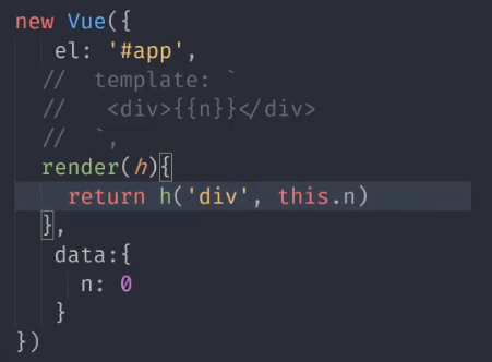 render会传一个参数(h),实际上就是createElement,创建一个HTML标签并返回。
