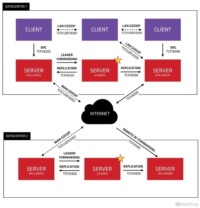 server:服务端,保存配置信息,高可用集群,每个数据中心的 server 数量推荐为 3 个或者 5 个。