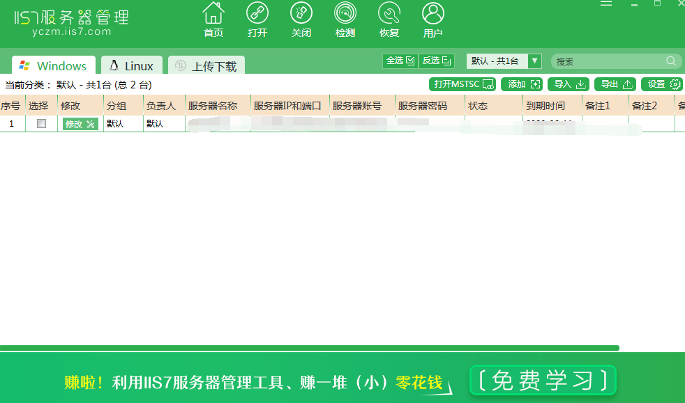 3.打开程序点击添加,添加服务器端口IP端口、用户名、密码是必填的,输入信息填完后点击添加然后出现该服务器的信息。